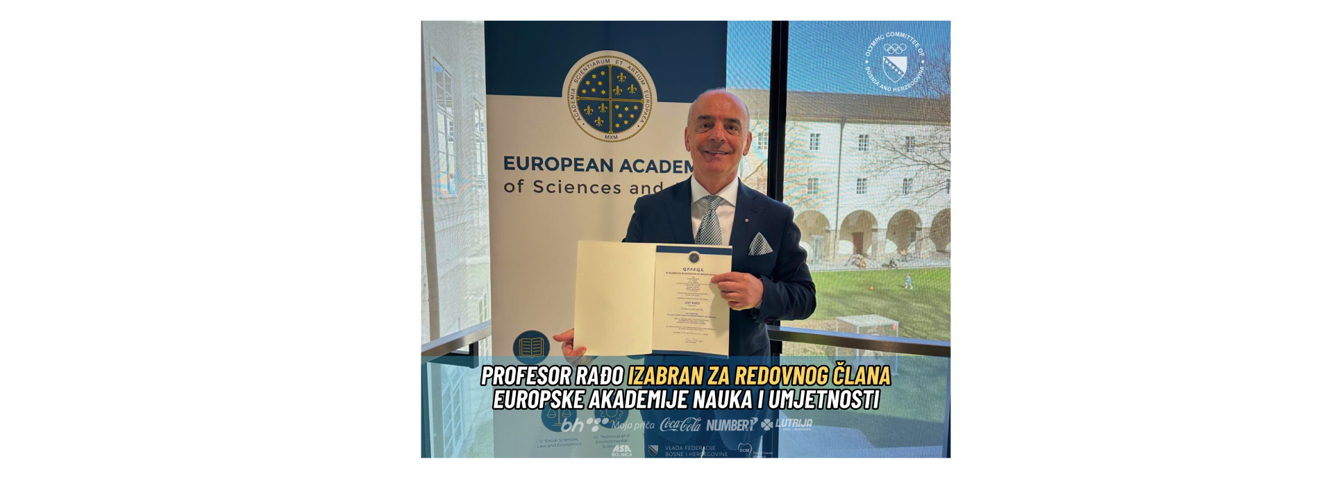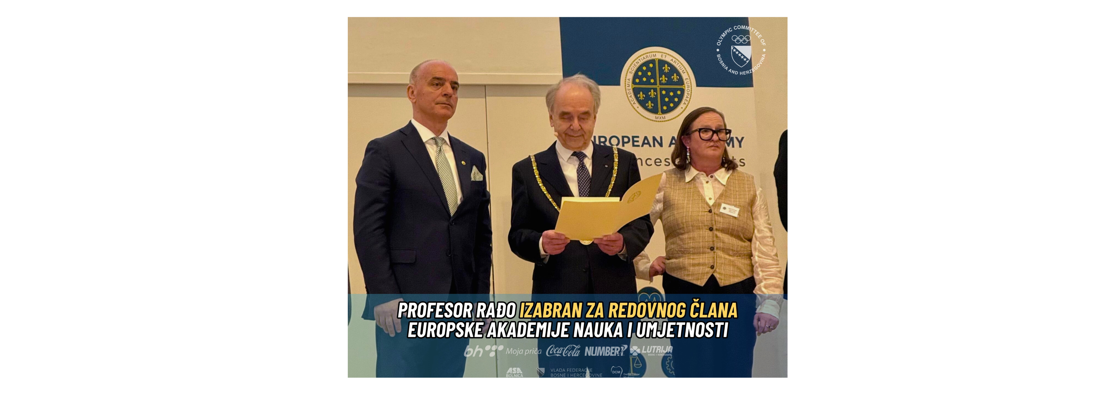 Predsjednik Olimpijskog komiteta Bosne i Hercegovine i redovni član Internacionalne akademije nauka i umjetnosti u Bosni i Hercegovini, prof. dr. Izet Rađo, izabran je za redovnog člana Europske akademije nauka i umjetnosti. Ovo visoko priznanje predstavlja značajnu ličnu čast, ali i važnu potvrdu da Bosna i Hercegovina posjeduje naučni i intelektualni potencijal ravnopravan evropskim akademskim tokovima.