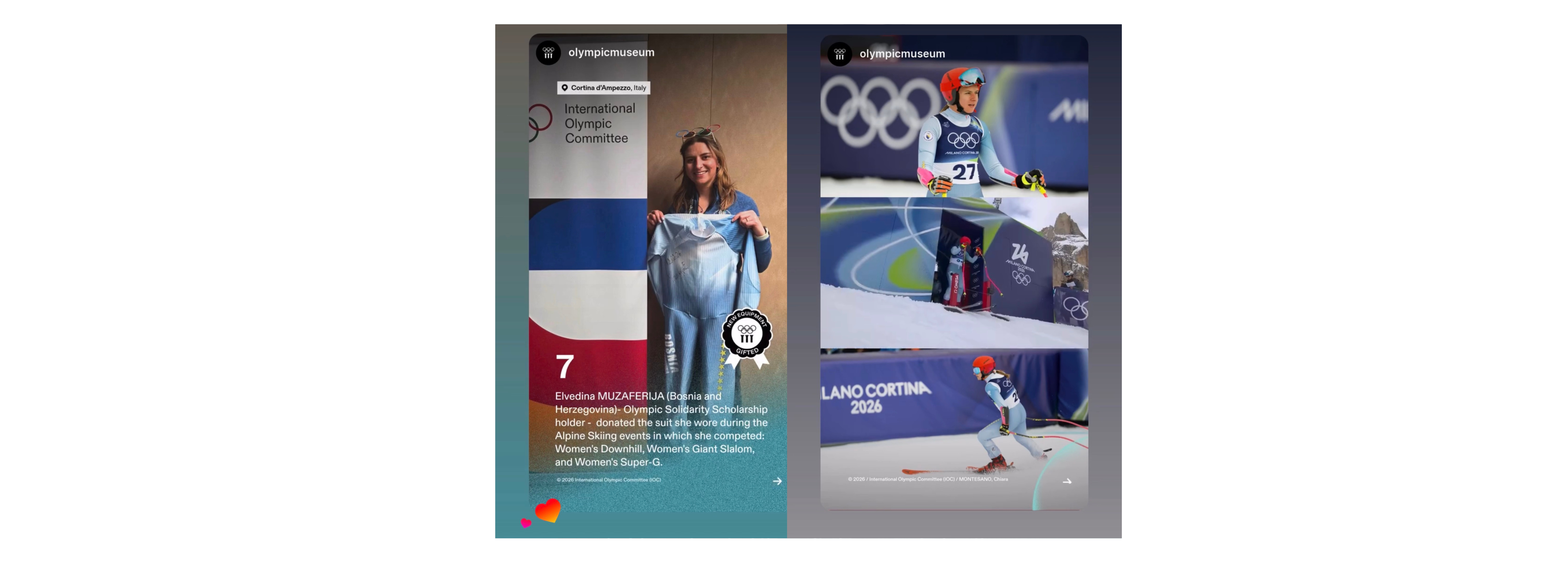 At the invitation of the International Olympic Committee, Elvedina Muzaferija, our top skier, donated her equipment, which will remain in the Olympic Museum in Lausanne as a lasting symbol of courage and achievement.